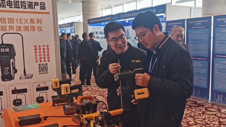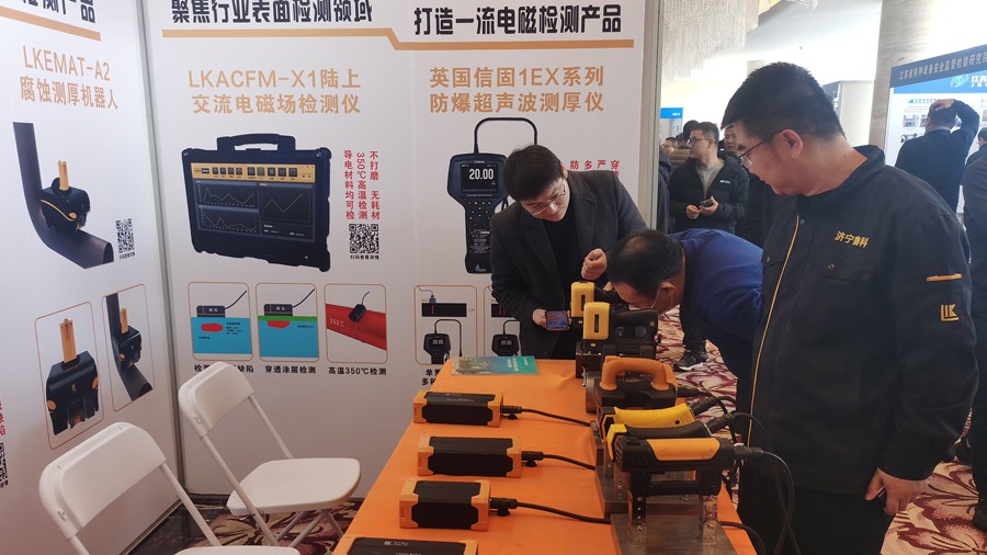 濟(jì)寧魯科檢測器材有限公司出席會(huì)議并攜自主研發(fā)的LKMT-D3無線磁軛探傷儀、LKMT-E2充電式旋轉(zhuǎn)磁場探傷儀、LKMT-E3L管道磁粉探傷儀、LKMT-E3A系列角焊縫磁粉探傷儀、LKMT-D6充電式交直流磁軛探傷儀、LKEMAT-A2腐蝕測厚機(jī)器人,以及聯(lián)合中國石油大學(xué)(華東)共同研發(fā)的ACFM交流電磁場檢測儀等設(shè)備參加設(shè)備展示,收到與會(huì)嘉賓一致好評。