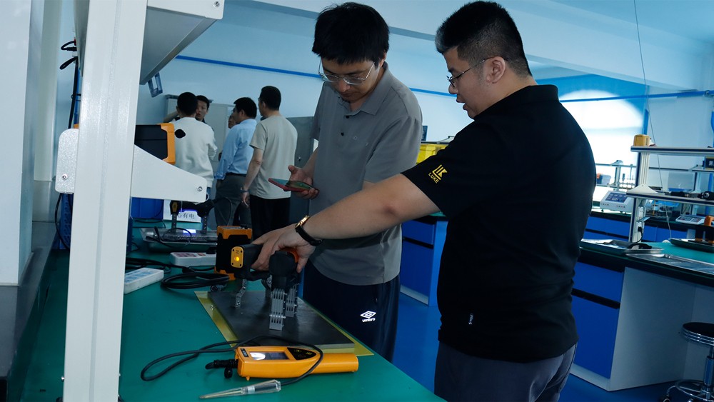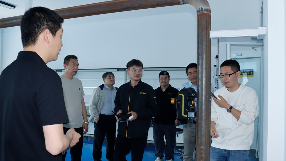 專家組一行參觀了我公司埋地管道實訓基地、無塵車間、研發(fā)中心實驗室等,對我公司自主研發(fā)的無線式磁粉探傷儀、管道磁粉探傷儀、角焊縫磁粉探傷儀、腐蝕測厚機器人、ACFM交流電磁場檢測儀等設備進行性能測試,均達到預期效果,對我公司研發(fā)、生產(chǎn)及售后能力給予高度評價。