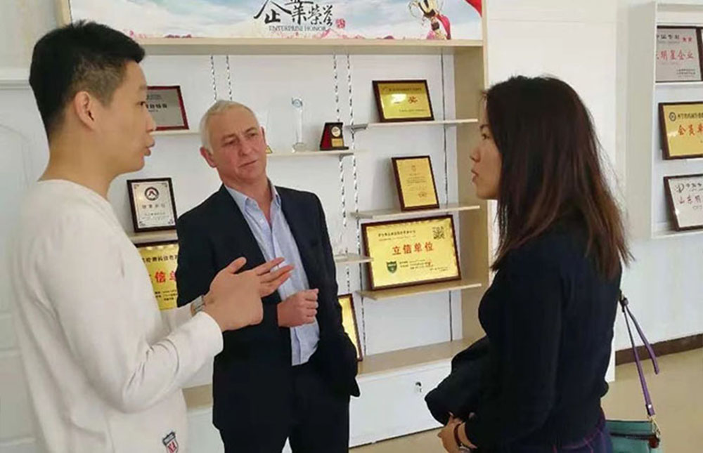 當(dāng)天,薛總代表公司對(duì)外賓的到來(lái)表示熱烈歡迎,并安排了細(xì)致的接待工作。在薛總的陪同下,Haines先生和魏女士參觀考察了公司生產(chǎn)車間、倉(cāng)庫(kù)、銷售人員辦公室、展品廳等,向外賓展現(xiàn)了我公司的生產(chǎn)理念和實(shí)力。