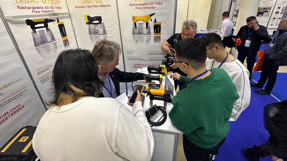 2024年4月15日,濟寧魯科檢測器材有限公司代表團遠赴俄羅斯莫斯科,參加2024年俄羅斯莫斯科NDT展。亮相本次展會的設備有聯(lián)合中國石油大學(華東)共同研發(fā)的ACFM交流電磁場檢測儀,自主研發(fā)的無線式磁粉探傷儀、管道磁粉探傷儀、角焊縫磁粉探傷儀、腐蝕測厚機器人等。儀器一經(jīng)亮相,便引起國際友人廣泛關注與一致好評。